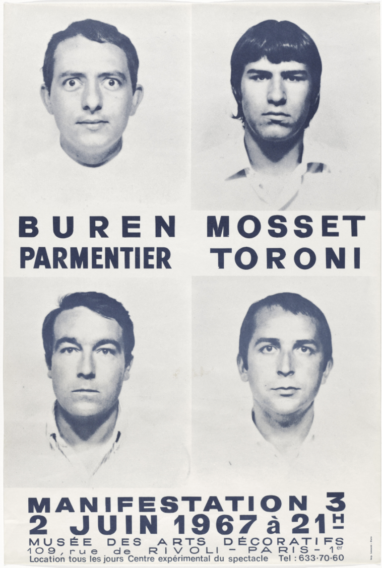 Further Harris Rowland Rowland Rowland Harris Rowland “manifestations” have happened at Bob Nickas’ May 68 Books and Records (September 8, 2017), Ortuzar Projects (April 7, 2018), and at MoMA (January 21, 2022). Of these, only May 68 Books and Records was an invitation. Each live NYC manifestation with original BMPT paintings (or artists) is unique and results in the creation of vinyl banners that can accompany the paintings or not.